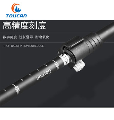 3.碳素杖身,轻便强韧、减震均匀。